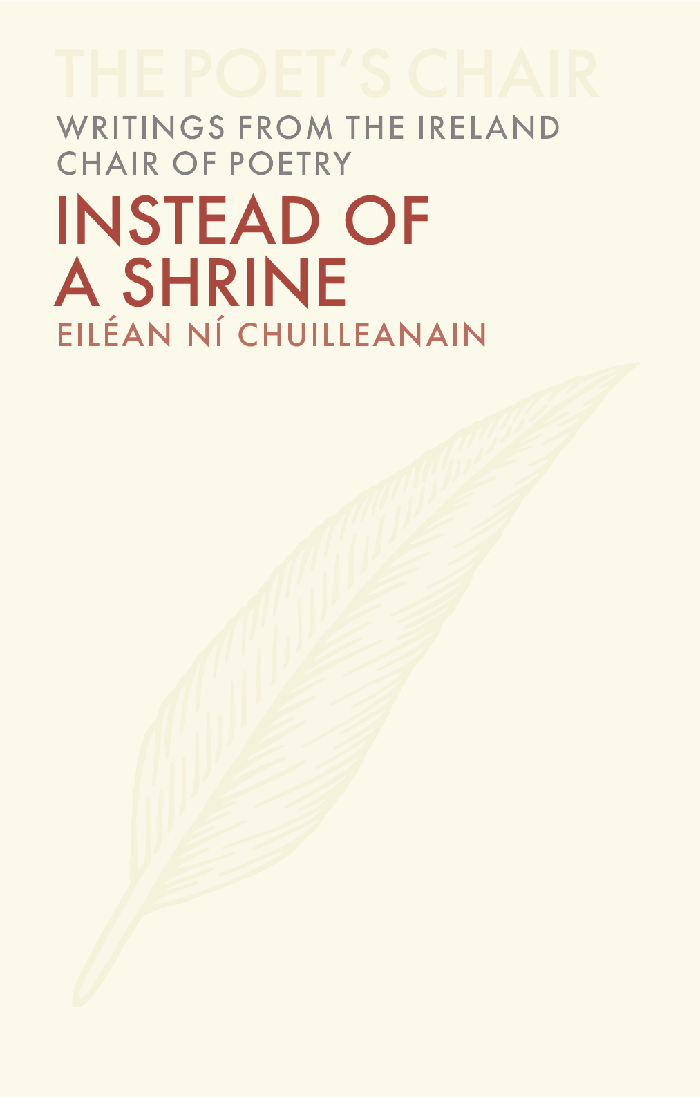 Eiléan Ní Chuilleanáin is one of contemporary Ireland’s most beloved poets. Her debut collection won the prestigious Patrick Kavanaugh Poetry Award, her poems are included on the final exam taken by all Irish secondary school students, and, in 2016 she was appointed the Ireland Professor of Poetry by Irish president Michael D. Higgins. It is this last honor that forms the backbone of Instead of a Shrine, the seventh installment in University College Dublin Press’s Poet’s Chair series. The three essays collected in this book examine a diverse slate of poetry-related topics and explore the forces that affect the work of every practicing poet. The first piece pays tribute to the Irish poet and translator Pearse Hutchinson (1927–2012), a valued friend and colleague of Ní Chuilleanáin’s, as well as to the languages he used and the impact they had even on readers that did not fully understand them. The second looks at the often disparaging treatment of poets in fiction, ranging from P. G. Wodehouse to Flann O’Brien. In the book’s final essay, Ní Chuilleanáin returns to her lifelong academic interest in the poetry of seventeenth-century England and calls on the work of poets as diverse as Bishop Henry King, Walt Whitman, and Thomas Kinsella to explore poetry’s relation to the ceremonies surrounding death. Elegantly designed and masterfully written, Instead of a Shrine offers a unique opportunity to return to—or begin engaging with—the dynamic world of poetry via the intellect of one of Ireland’s modern masters.