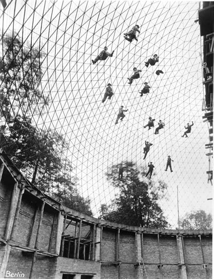 The second–to–last image of Moholy–Nagy’s The New Vision is striking in how it posits structural lightness—material freed from weight—as an inherently positive social value (fig. 3.13). The photograph, taken in 1926, depicts a dozen or so men balanced on a soaring, intricate lattice of triangular struts; the caption indicates that they are constructing the framework for the Carl Zeiss planetarium in Jena, Germany. The description continues: “A new phase of our victory over space: men poised in a swaying open network, like airplanes flying in a formation.” As was the case for Fuller, Moholy–Nagy’s vision of lightness as the new, universal property of modern construction linked engineering innovations to unified yet networked social design. The ability of technologically advanced structures to represent, metaphorically, the interconnected matrix of social systems was key. Like Fuller’s dome designs, whose shape simultaneously referenced the enclosure of domestic life, kiosk–like community shelters, and the networked systems of Spaceship Earth, Moholy–Nagy’s networked forms could inspire a “universal outlook” that would posit design improvements as part of a pattern of growth applicable to the whole of society. The artist–designer would deal above all with information and its representation; in an issue of the journal ANY devoted to Fuller it was noted, “The ability to gather and coordinate vast amounts of information enables the designer to deal once again with the ‘design of the whole.’”