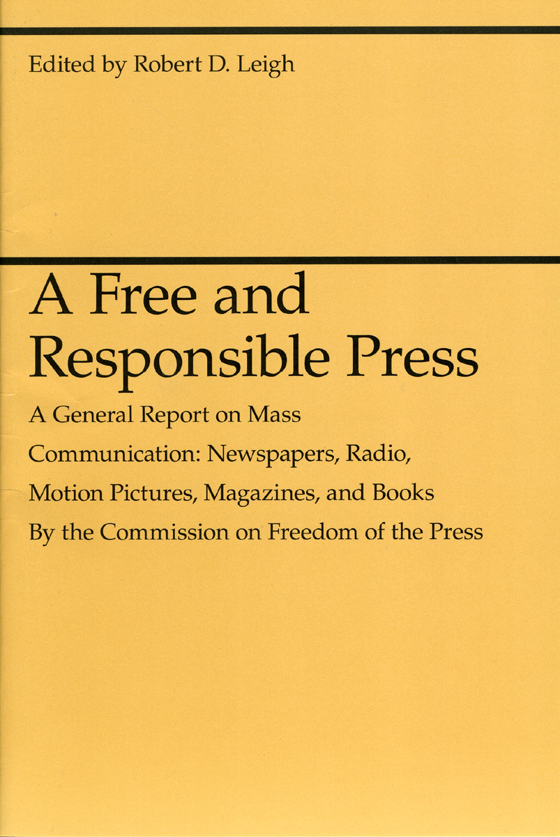 The question of how much freedom the press should enjoy has been debated throughout American history. In 1942 an impartial commission was formed to study mass communication, evaluate the performance of the media, and make recommendations for possible regulation of the press. This book is the general report of that commission.
