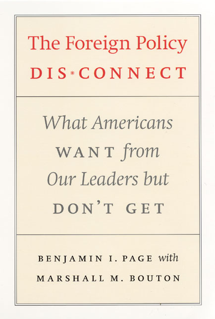 Page and Bouton support this argument by painting a uniquely comprehensive portrait of the military, diplomatic, and economic foreign policies Americans favor. They show, for example, that protecting American jobs is just as important to the public as security from attack, a goal the current administration seems to pursue single-mindedly. And contrary to some officials’ unilateral tendencies, the public consistently and overwhelmingly favors cooperative multilateral policy and participation in international treaties. Moreover, Americans’ foreign policy opinions are seldom divided along the usual lines: majorities of virtually all social, ideological, and partisan groups seek a policy that pursues the goals of security and justice through cooperative means. Written in a clear and engaging style, The Foreign Policy Disconnect calls, in an original voice, for a more democratic approach to creating such a policy.