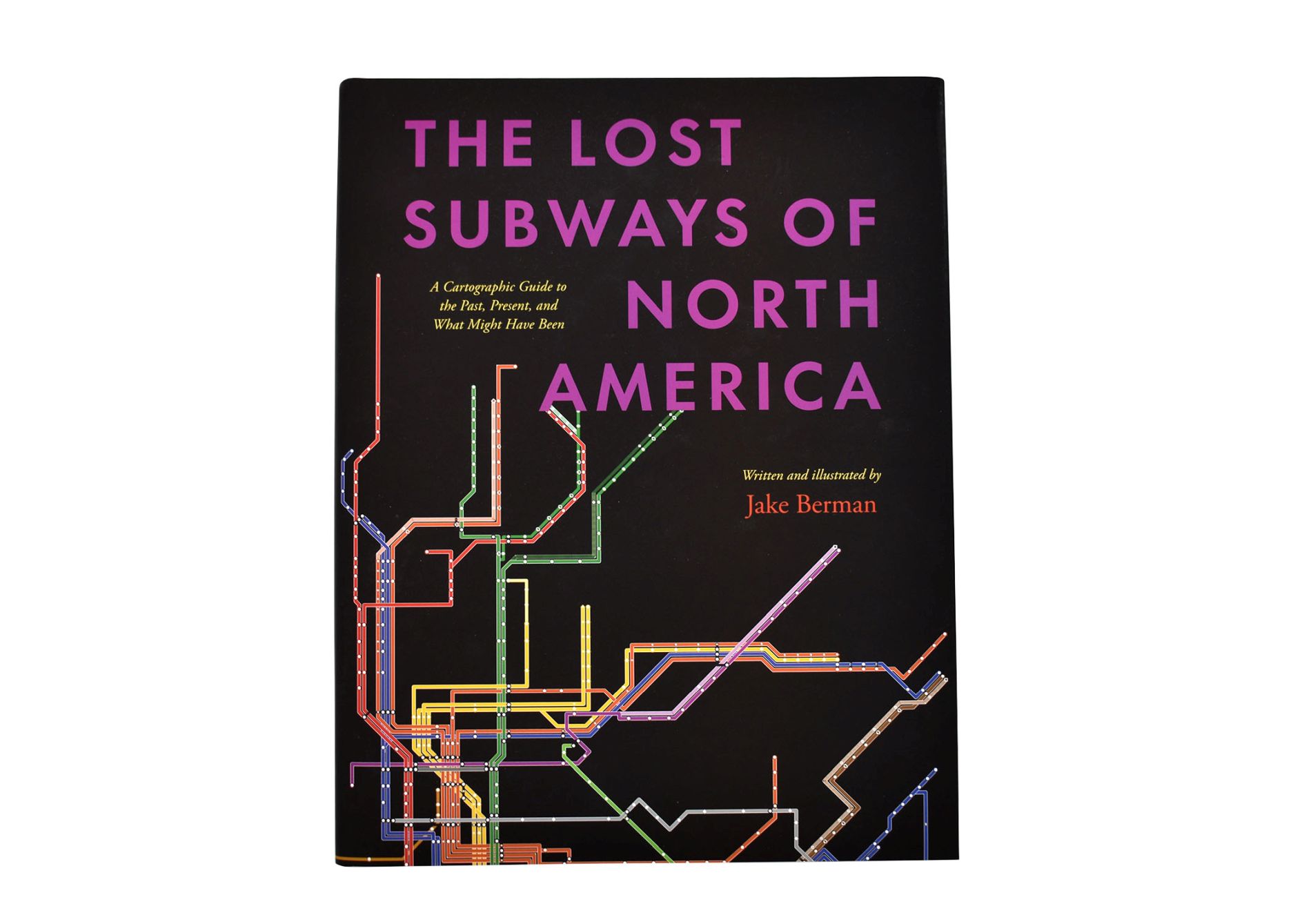 The Lost Subways of North America offers a new way to consider this eternal question, with a strikingly visual—and fun—journey through past, present, and unbuilt urban transit. Using meticulous archival research, cartographer and artist Jake Berman has successfully plotted maps of old train networks covering twenty-three North American metropolises, ranging from New York City’s Civil War–era plan for a steam-powered subway under Fifth Avenue to the ultramodern automated Vancouver SkyTrain and the thousand-mile electric railway system of pre–World War II Los Angeles. He takes us through colorful maps of old, often forgotten streetcar lines, lost ideas for never-built transit, and modern rail systems—drawing us into the captivating transit histories of US and Canadian cities.