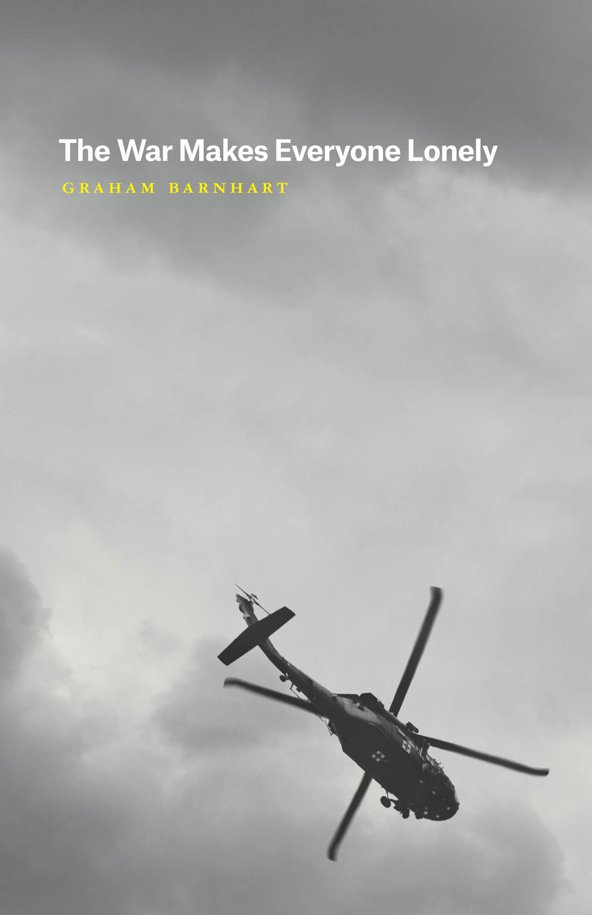 "In his ruminative debut, The War Makes Everyone Lonely, Graham Barnhart documents in fugitive snapshots the service in Afghanistan and Iraq of a US Army medic, who returned to the States searching for words to describe realities that may have no words, yet require them. Keenly observant about the tension between complicity and bravery, war and the homefront, Barnhart finds himself 'dressed like the men who killed / their husbands, [passing out] sewing machines / to widows so they could make clothes / for their children and embroider cemetery flags.' Here is a poetry that performs 'Notice and Focus'—neither shrieking nor staying silent about the terrible rubble of the Terror Wars. And yet, it still dreams of waking up to nudges from horses, black garbage scrap in barbed wire, and a love that's 'so clear and thin / it couldn’t be seen.'"