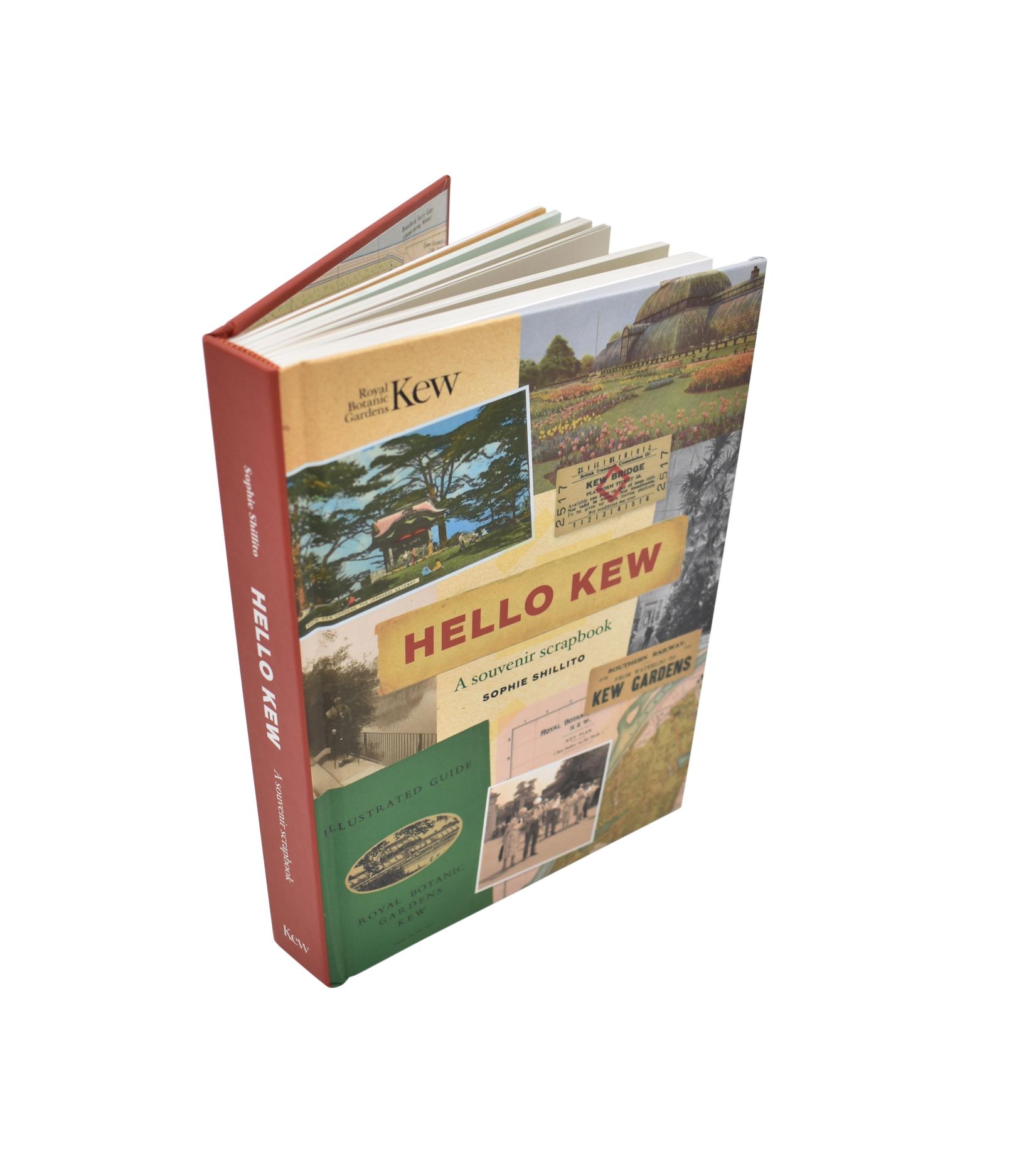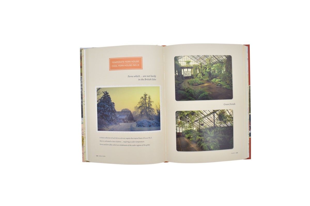 'Hello Kew is a compilation of words and pictures that celebrates the long history of souvenir guidebooks at the Royal Botanic Gardens, Kew and through them recreates the experience of visiting Kew through the ages. This beautifully curated album includes fascinating cuttings, charming pictures, and intriguing stories. It allows readers to time-travel through Kew’s ancient landscape, glimpsing history and discovering the Gardens. It is a keepsake from the past, a souvenir from a trip to a time before ours, a book that celebrates the glory of Kew. Packed full of fantastic archival imagery, including photographs, guidebooks, maps, postcards, ticket stubs and more, this beautiful gift book offers an in-depth view of the history of Kew.